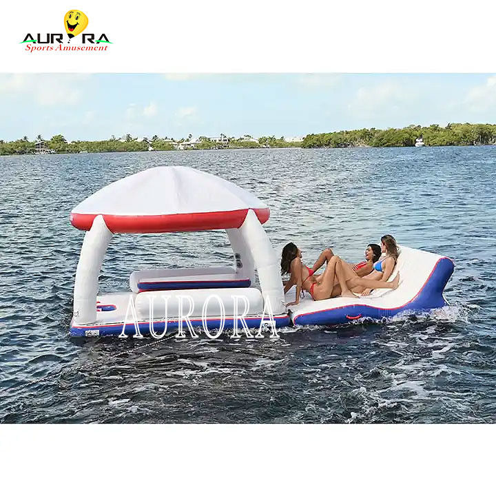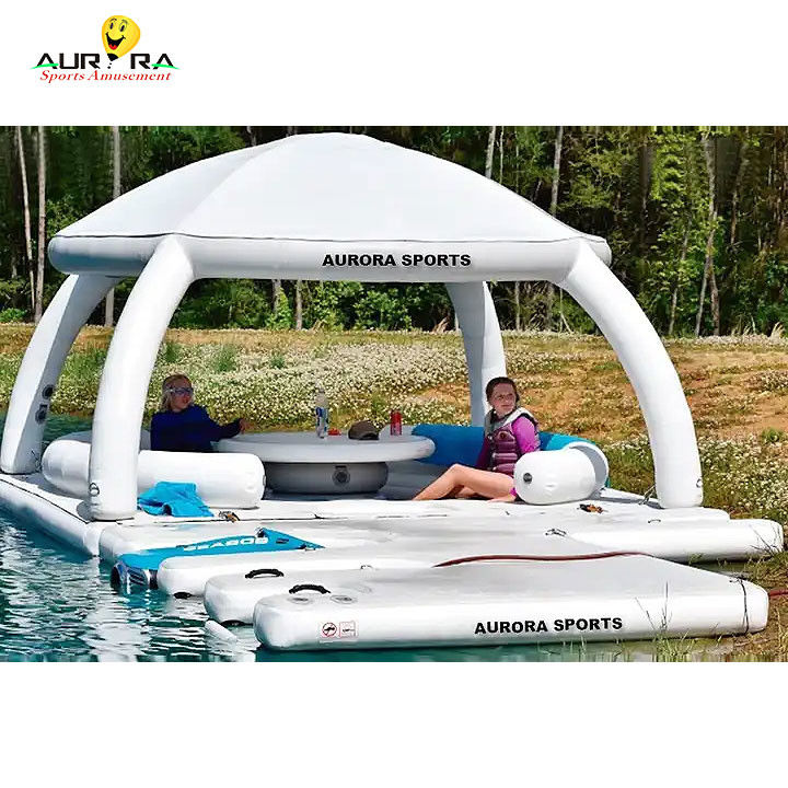 هذارصيف عائم قابل للنفخمنصة اليخوت هي مع حصيرة، طاولة، دعامات الظهر، ملجأ خيمة ورصيف عائم وهلم جرا، وهي مصممة لربط بسهولة معا،نحن نصنع سلسلة من حلقات الـ 316 من الفولاذ المقاوم للصدأ التي ستسمح للمالكين بربط العديد من السفن معًاحتى تتمكن من الجمع بين العنصر الواحد بنفسك لإنشاء منصات عائمة أكبر. جميع الخيام القابلة للنفخ مصممة لتناسب أي سطح عائم. توفر هذه الخيام ظلًا ممتازًا على الماء.يمكنك تناول الغداء على الماءأو تتسكع طوال اليوم. بالإضافة إلى ذلك، الخيام تعوم مباشرة على الماء ويمكن استخدامها أيضا على الشاطئ!