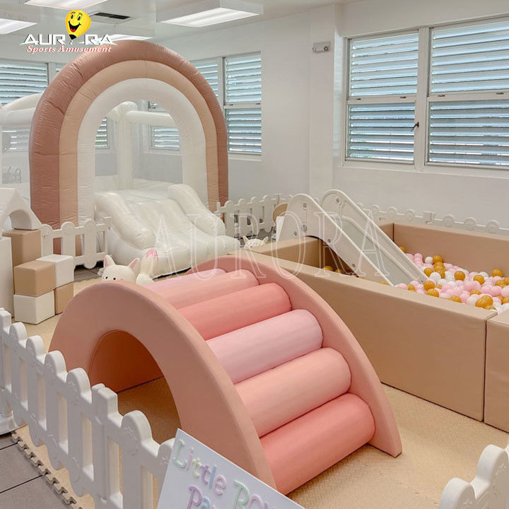 مبدأ معدات اللعب الناعمة هو توفير بيئة لعب آمنة وممتعة للأطفال باستخدام مواد وبنيات ناعمة. هذه الأجهزة تتكون عادة من حصائر مليئة بالرغوة،الهياكل القابلة للنفخ، الحواجز المصنوعة من البلاستيك أو القماش، الخ